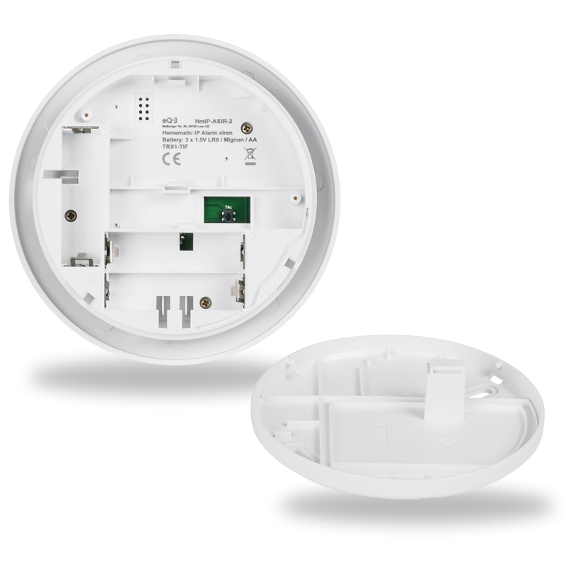 Poplachová bezdrôtová Siréna (HmIP-ASIR-2) určená na použitie vo vnútorných priestoroch je súčasťou systému chytrej domácnosti Homematic IP, siréna má výkonný generátor akustického signálu s intenzitou 90 dB a pár vysoko svietivých červených LED diód.