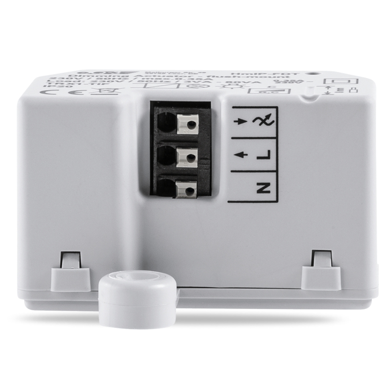 Programovateľný bezdrôtový Stmievací akčný člen (HmIP-FDT) pre skrytú montáž, napájaný zo siete 230 V, je súčasťou systému múdrej domácnosti Homematic IP.