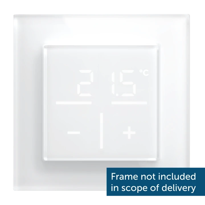 Poznámka: Pre kompletné riešenie odporúčame dokúpiť zodpovedajúci sklenený rámček, ktorý dokonale doplní vzhľad vášho termostatu a zaistí harmonické začlenenie do vášho interiéru.