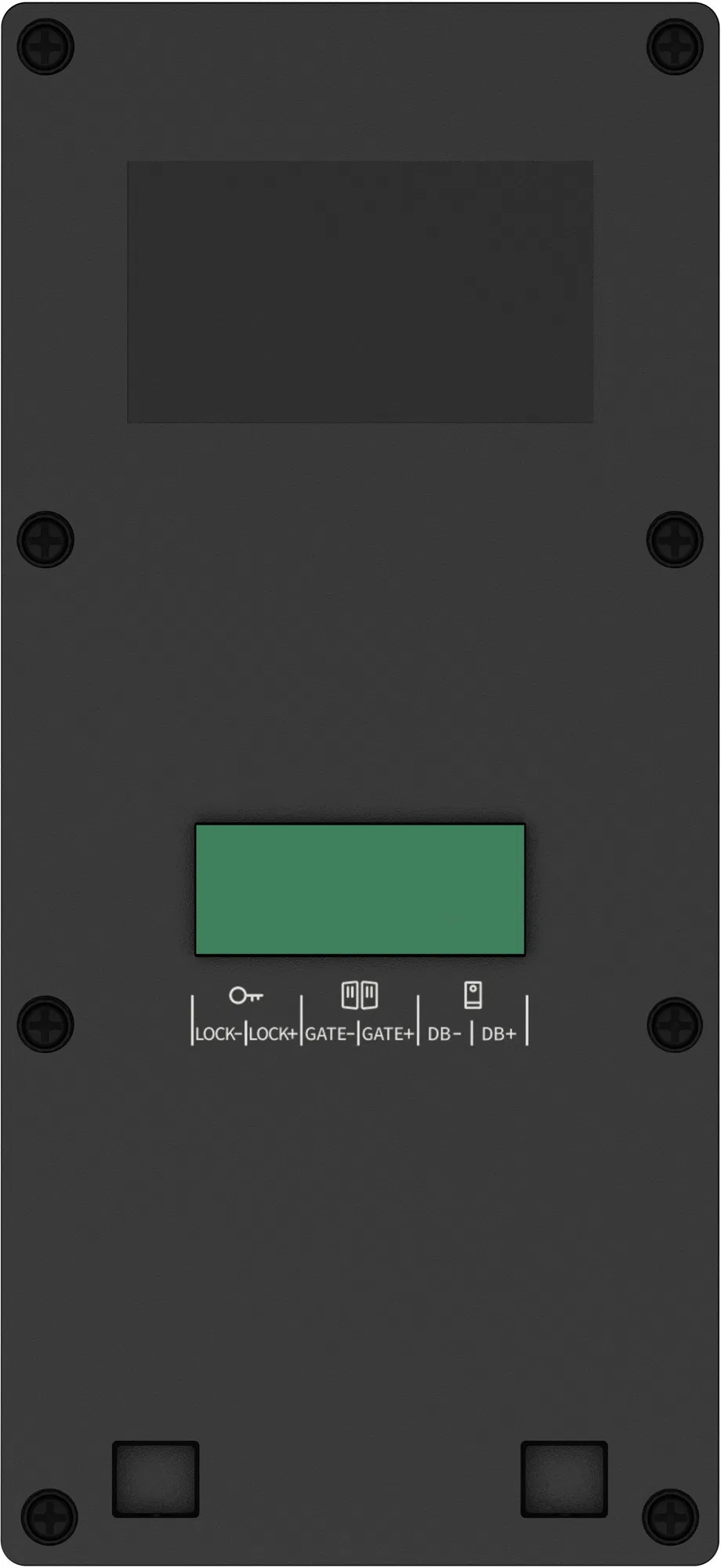 Terminál: Dva porty pro připojení obrazovky. Dva porty pro připojení brány. Dva porty pro připojení elektrického zámku.