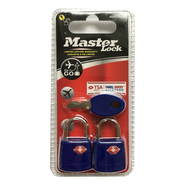Set 2 ks visiacich zámkov so šírkou 23 mm pre batožinu, schválené agentúrou TSA. ABS plastové telo zámku obsahuje cylindrickú vložku s 3 stavítkami so spoločným kľúčom, jeho strmeň je z ocele o Ø 3 mm a je odolný proti prerezania a prestrihnutí. Súčasťou balenia sú 4 ks kľúčov.
