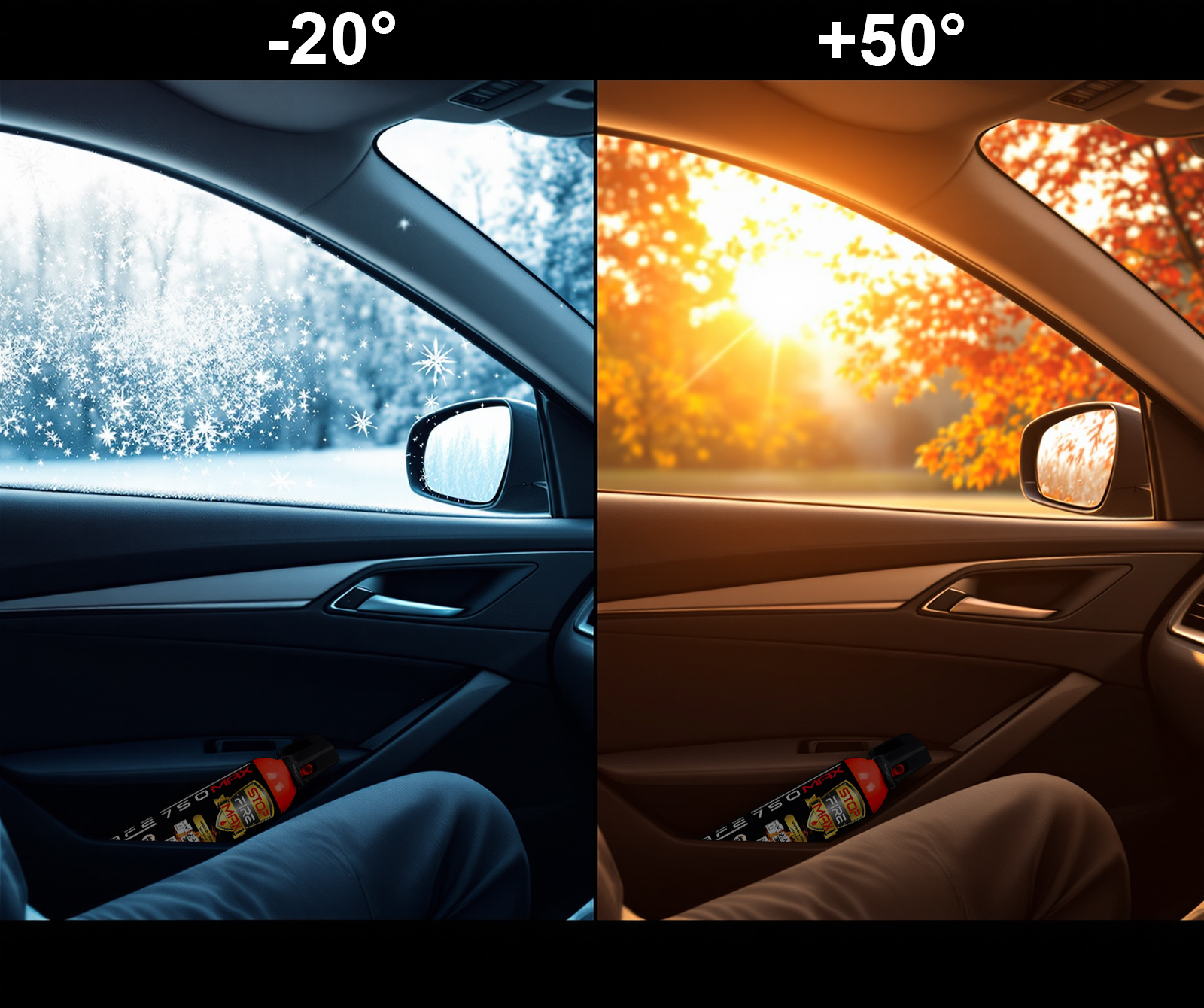 Ako jediný hasiaci sprej vo svojej kategórii účinnosti a výkonu nepodlieha výkyvom teplôt, čo umožňuje jeho celoročné skladovanie napríklad v automobile.